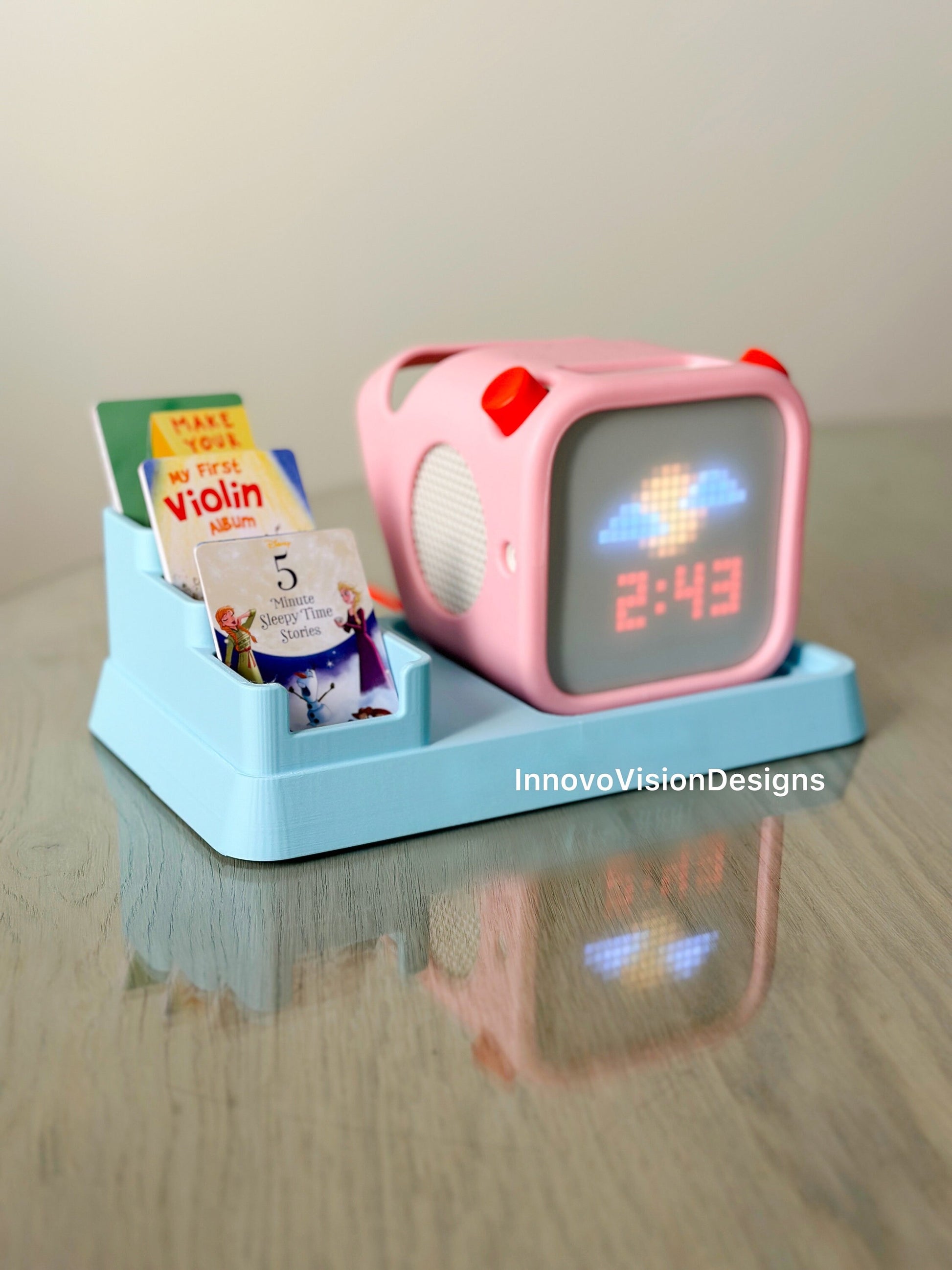 Easily put your Yoto Player face down into custom fit grooves in the Docking stand for Nightlight mode.